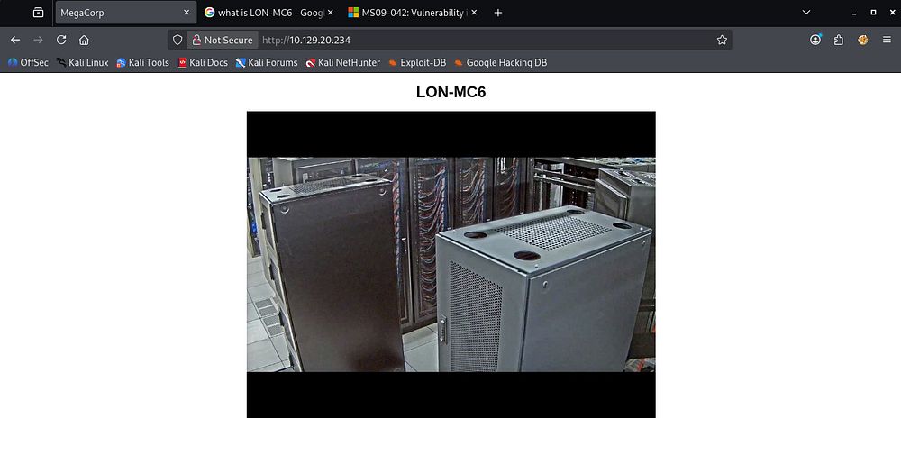 My directory scans found absolutely nothing on the web server apart from the index page. Checking out the website just shows a picture of some sort of server along with the title of LON-MC6.
