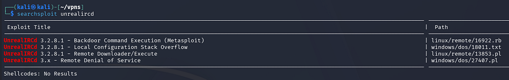 I’m not entirely familiar with using IRC clients, but connecting to the server seemed to fail. However, using searchsploit to cross-match the software name reveals a few known vulnerabilities for UnrealIRCd v3.2.8.1.