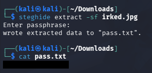$ steghide extract -sf irked.jpg