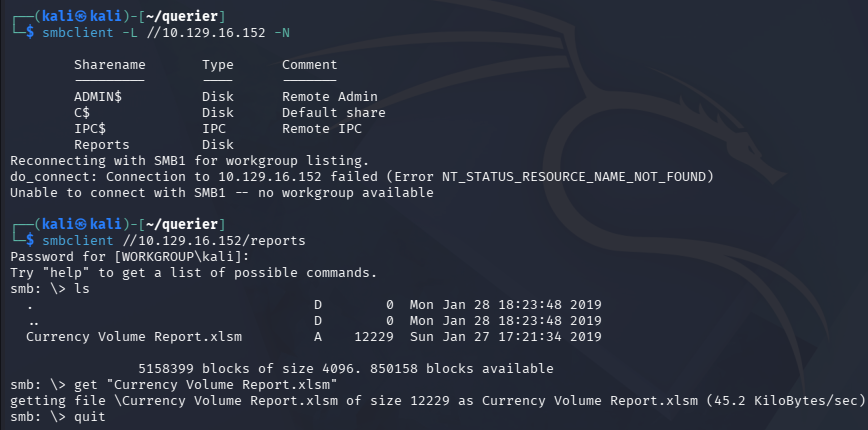 | DNS_Computer_Name: QUERIER.HTB.LOCAL