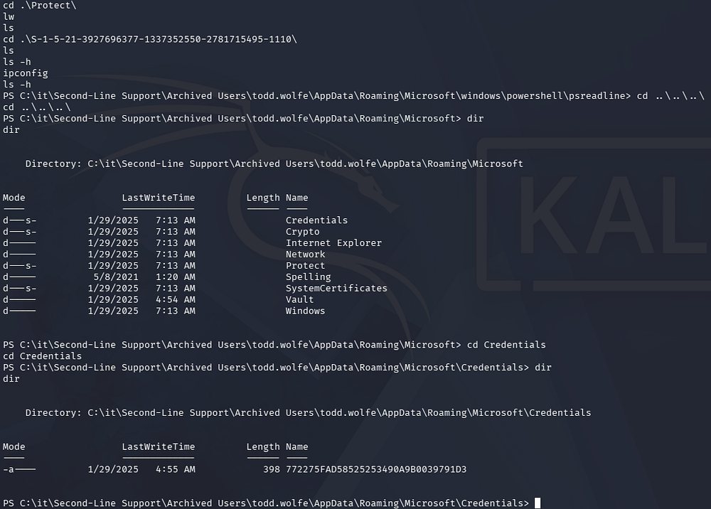 cd "C:\it\Second-Line Support\Archived Users\todd.wolfe\AppData\Roaming\Microsoft\Credentials"