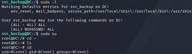 Listing Sudo permissions reveals that we have full administrative rights over this subsystem, so we’re able to just spawn a root shell right away.