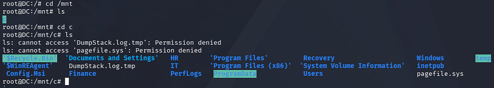 Since this is a backup account for the domain, I check to see what is mounted and discover that we now have unrestricted access to the C:\ drive. This means we can effectively copy the NTDS.dit and SYSTEM registry to our local machine in order to dump all domain hashes, including the Administrator’s.