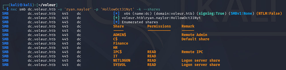 $ nxc smb dc.voleur.htb -u svc_iis -p '[REDACTED]' -k