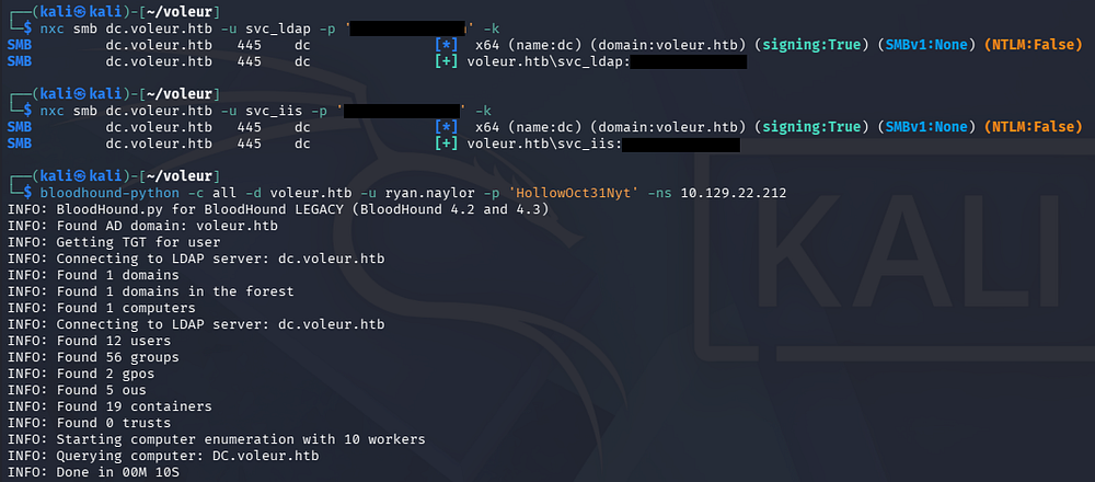 $ bloodhound-python -c all -d voleur.htb -u ryan.naylor -p 'HollowOct31Nyt' -ns 10.129.22.212