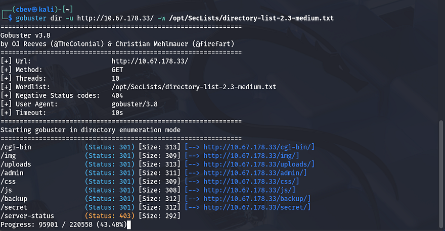 This version of OpenSSH has an exploit for username enumeration, however I couldn’t get the proof of concepts I found to work. Thinking back to the subdirectory scans, we found the /cgi-bin but it wasn’t exposed to read as we got a 403 Forbidden code back.