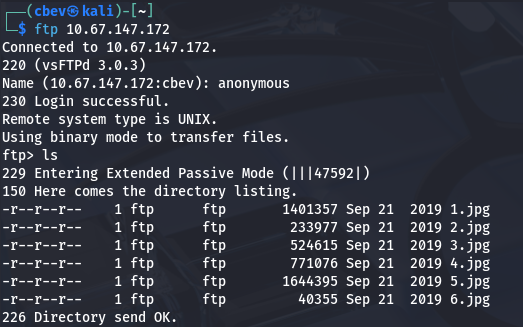 Before doing anything else, I fire up Dirsearch to find directories on port 80 and 443 to save on time. Then I login to the FTP server as anonymous authentication is allowed.