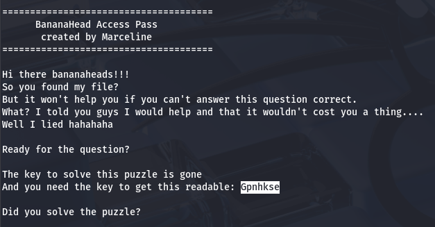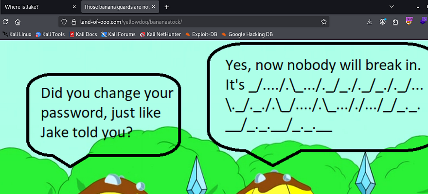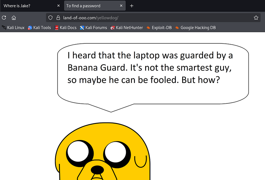 This discloses that BMO’s laptop is being guarded by a Banana Guard and that he can be fooled. Not having anything more to go off of, I keep enumerating subdirectories until something pops up.
