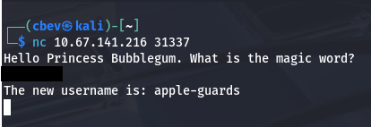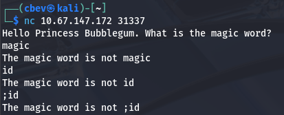 Next up is the mystery port on 31337. I connect to it using Netcat and it prompts us to enter a magic word.