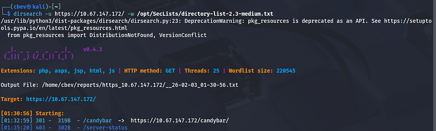 My directory scans finally finish and I get a hit back at /candybar. Let’s check it out.