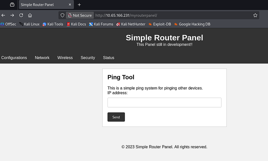 My directory scans kept timing out for some odd reason and this page is static so we won’t be able to exploit any functionality here. Let’s head over to the router panel.