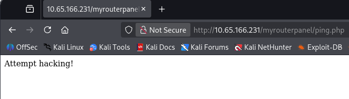 So how do we exploit this with the pinging tool? We know that it doesn’t sanitize the input correctly as when we supply a semicolon or other operators to chain commands, it detects a hacking attempt instead of an error consistent with pinging (like “Failed to execute ping”). If we provide a valid IP and then our command wrapped in the variable parenthesis, we can have it execute arbitrary commands.