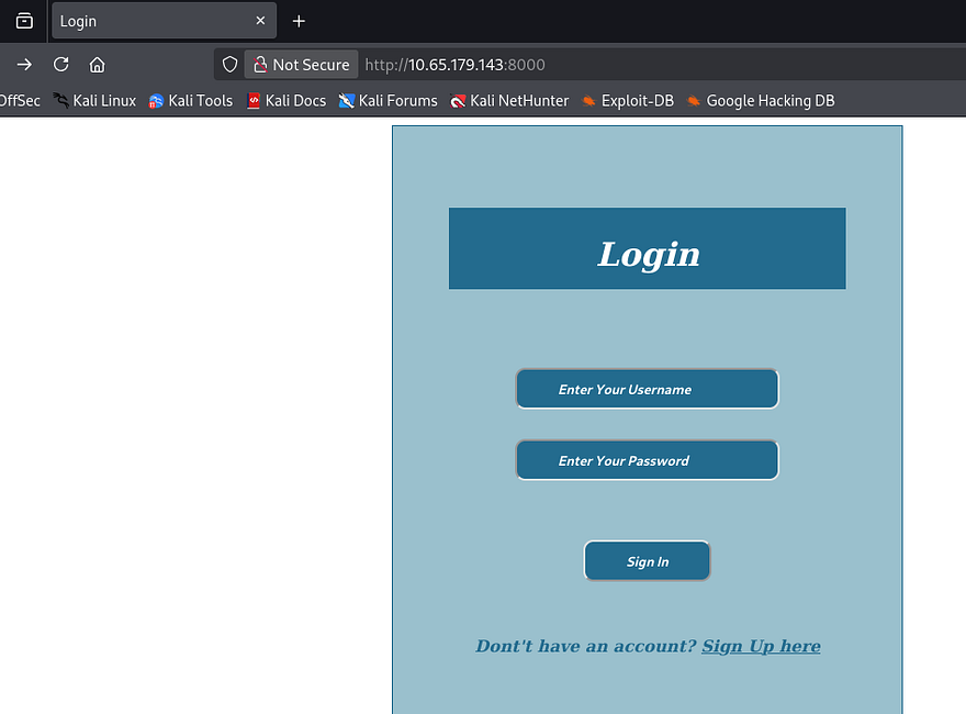 We can’t do too much on SSH without creds so I start a few Gobuster scans to find directories/subdomains for the web server and head over there. The landing page is just a login panel for some application and it seems to be using Python-Werkzeug to run it.