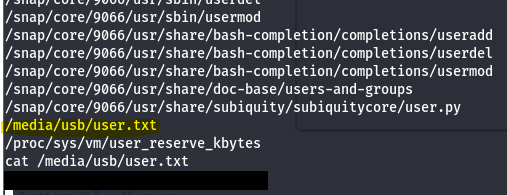 This shows it was hiding inside of /media/usb, which is a very fitting place for this box’s theme. That finishes out the box!