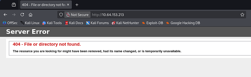 I fire up Gobuster to search for subdirectories/subdomains in the background before heading over to them. The landing page on port 80 shows a typical 404 page for Microsoft IIS and my scans didn’t find anything, so I can safely rule this one out.