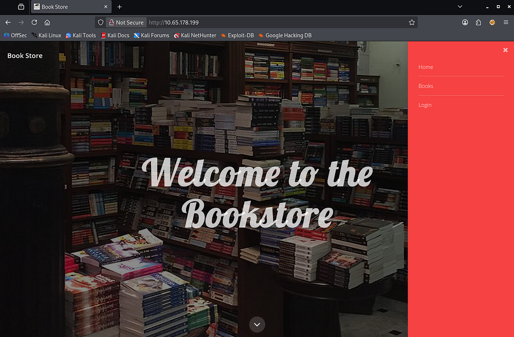 First, I’ll do some light enumeration on each site to get a basic idea of what the applications are used for and how we may go about exploiting them. The Apache server hosts a Bookstore webpage that lets us browse books in stock, however it doesn’t query a database so any type of SQL injection there is out of question.