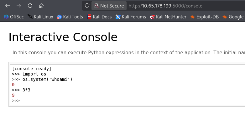 Now that we can successfully read files on the server, I grab the debug console’s PIN code from /home/sid/.bash_history and use it to authenticate on that page. I also tried to grab Sid’s RSA private key to login over SSH, but nothing was found.