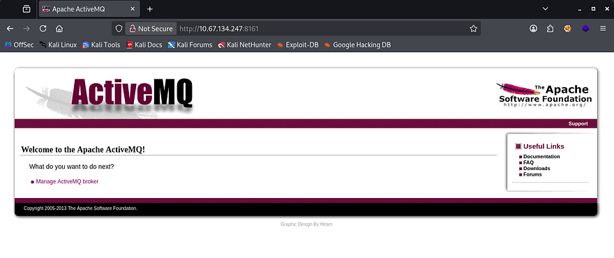 Checking out the landing page shows the standard page for newly installed Apache ActiveMQ instances. Some research reveals that it’s a popular, open-source, Java-based multi-protocol message broker that enables asynchronous communication between distributed applications.