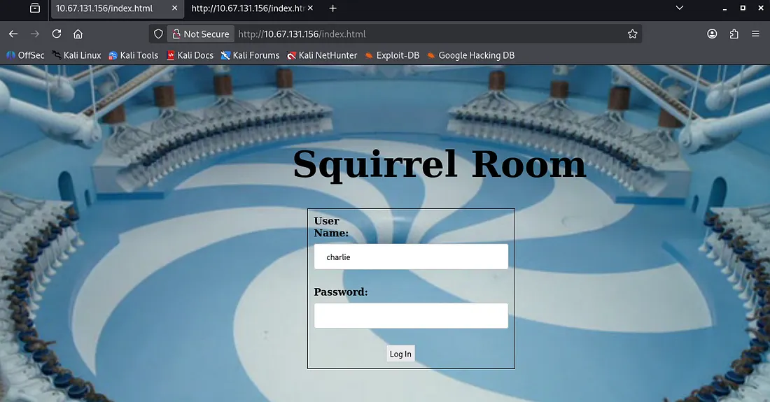While that ran I checked the webpage and found a login panel to squirrel room.