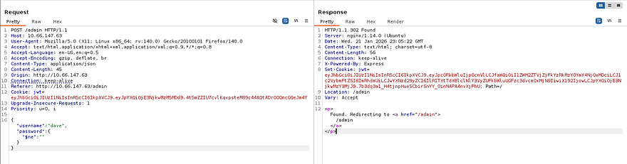 The site on port 3000 is the exact same as our first one, so it’s pretty obvious we must exploit NoSQL injection as the JWT decodes to just a type and alg header. Looking at the source code shows the logic behind the sign in, we must supply JSON data.
