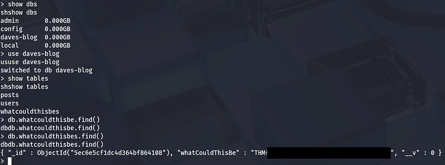 We can grab quickly grab the third flag by digging in the Mongo database.