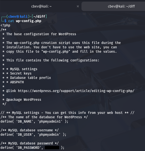 I end up downloading the wp-config.php file and find credentials for the phpmyadmin page.