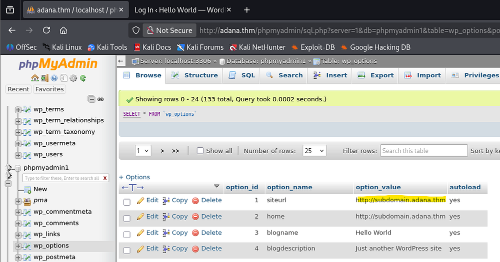 Once logged in, we have a few options to grab a shell. This is an article about how we can use SQL to write into a file and execute it from our browser.