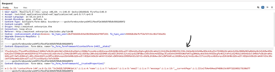 The entire idea behind this attack chain is to use the encryption key to upload a base64 encoded payload to the /fileadmin/_temp/ folder via a contact form and have our object deserialize to create a backdoor on the server.