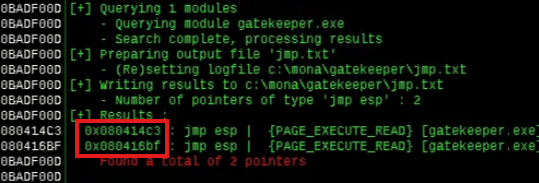 Now, we need to find a JMP ESP address that does not include the bad characters we’ll supply. I’m using Immunity debugger as the article does as well, however this is relatively easy to do.
