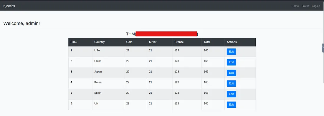 The only real difference between the admin and normal user dashboard is a profile update tab. This gets used when we login as seen by the “Welcome, admin!” message which is different from the dev account one.