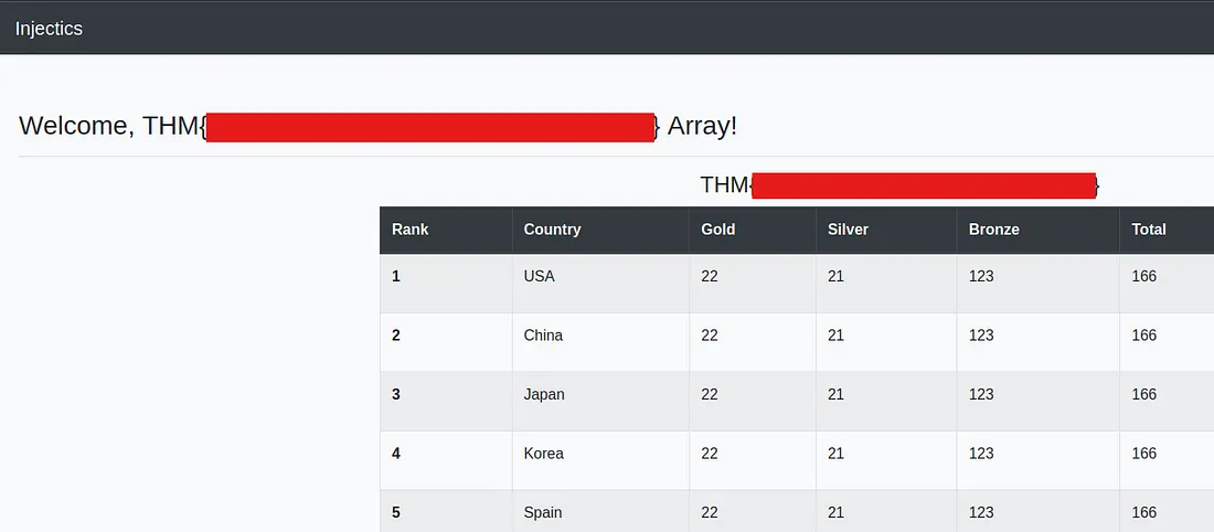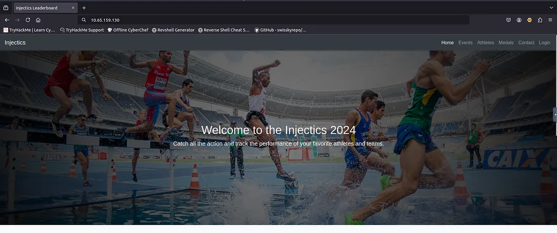 There is SSH on port 22 and a web server on port 80 running on PHP. Checking the web server, I find a webpage dedicated to tracking different country’s sports performances.