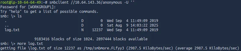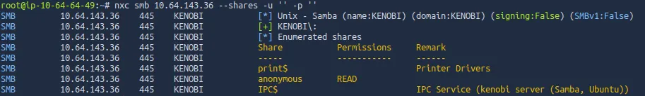 Either way we find that there is a share named ‘anonymous’ that we can read.