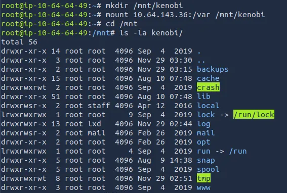 After moving the id_rsa key, I mount /var to a directory I named kenobi