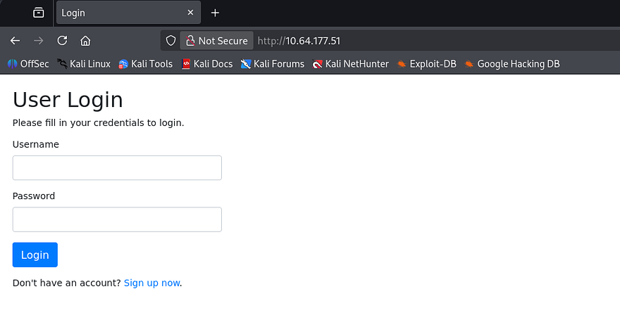 Before heading over to the website, I fire up Gobuster to search for subdirectories/subdomains in the background. Checking out the landing page shows a plain login panel for the site.