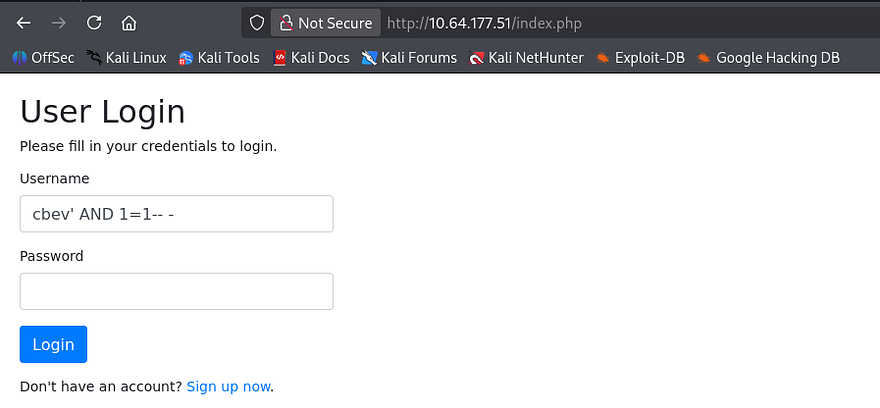 Stumped as to what we could really go about exploiting, I revisit the login panel for further SQL Injection testing. Strangely, if we use a valid account to login without a password and also used a SQL operator that isn’t blacklisted such as AND, it works to bypass the login panel.