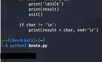 Note: This script is pretty crude so if it only returns your registered username from earlier, update the statement to contain something along the lines of where username like '{prefix}%' and username != 'CREATED_USER' to exclude that result.