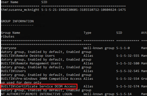 [+] User Enrollable Principals : THM.LOCAL\Authenticated Users