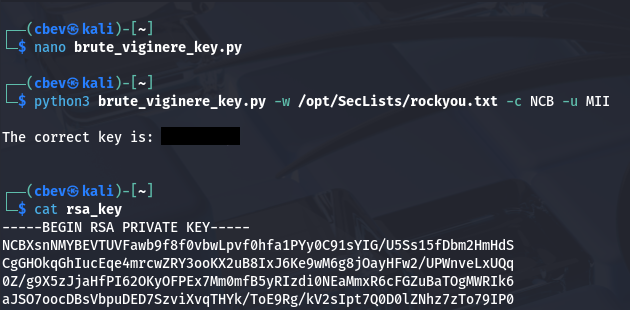 print('python3 brute_viginere_key.py -w /usr/share/wordlists/rockyou.txt -c ciph -u qwjd')